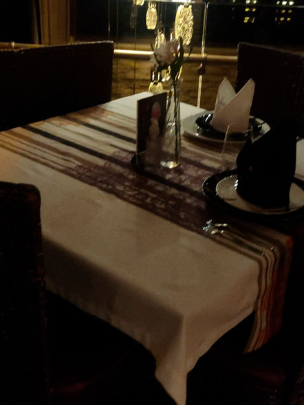 A decoração do ambiente e das mesas, realmente te transporta para a Índia, como um local tradicional indiano, possuem algumas estátuas de deuses, que compõem a cultura do país, como o Ganesha e a Lakshimi.