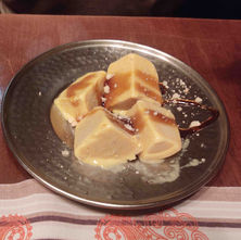 E a sobremesa, pedimos o Malai Badan Kulfi, com sabor de açafrão e amêndoas. A calda do sorvete ganhou o seu destaque.